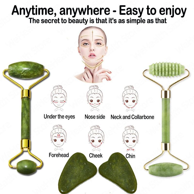- BENEFITS: Face roller --- muscle tension relief and lymphatic drainage; reduce facial edema and help your skin look fresh; firm your skin and make it look dewy and lifted